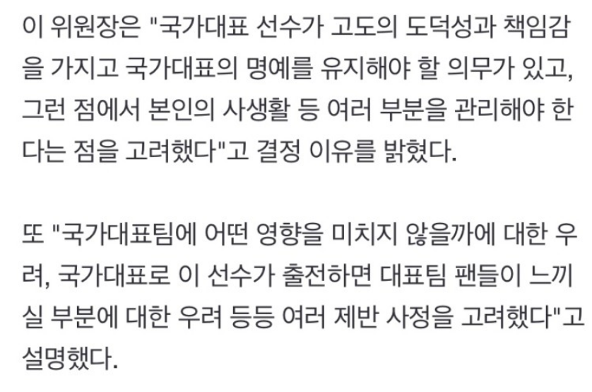 국가대표의 명예를 고려한 처사라 생각할 수 있습니다.